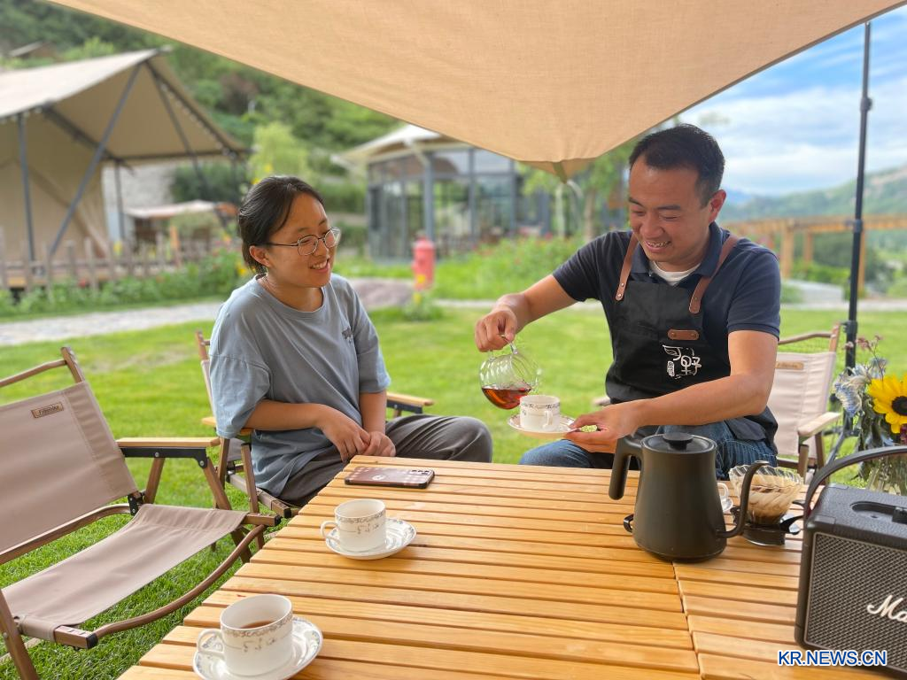 진탄위(晋探宇·35)는 지난해 7월 고향으로 돌아와 캠핑장을 운영하고 있다. 진탄위는 "텐트 13개를 보유하고 있고 공휴일엔 1~2주 전에 예약이 끝난다"고 소개했다. 그는 코로나19가 장거리 여행과 기존 여행업계에 적잖은 타격을 줬지만 여행에 대한 사람들의 욕구는 결코 줄어들지 않았고 체험과 오락이라는 장점이 뛰어난 캠핑이 대안으로 떠올랐다고 설명했다.
