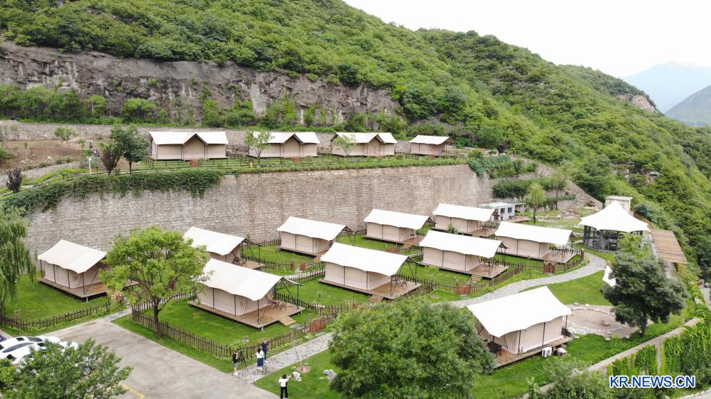 지난 1일 진탄위(晋探宇)가 운영하는 허베이(河北)성 소재 캠핑장을 드론으로 촬영. (사진/신화통신)