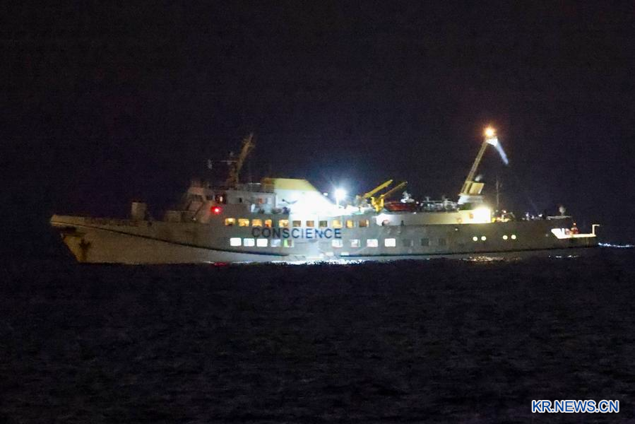 8일 이스라엘 남부에서 가자구호선단 글로벌수무드함대의 선박 한 척이 저지된 후 아슈도드 항구로 예인됐다.