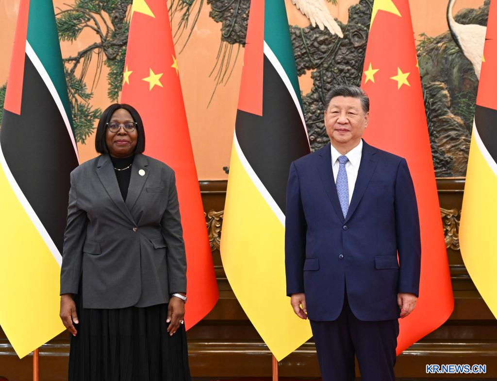 [신화망 베이징 10월14일] 시진핑(習近平) 중국 국가주석이 14일 오전 베이징 인민대회당에서 글로벌 여성 서밋 참석차 중국을 방문한 마리아 레비 모잠비크 총리와 회견했다. [촬영/신화사 기자 자이젠란(翟健嵐)]