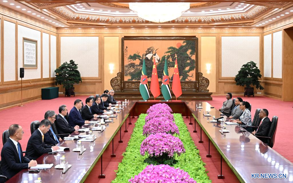 [신화망 베이징 10월14일] 시진핑(習近平) 중국 국가주석이 14일 오전 베이징 인민대회당에서 글로벌 여성 서밋 참석차 중국을 방문한 실바니 버튼 도미니카연방 대통령과 회견했다. [촬영/신화사 기자 선훙(申宏)]