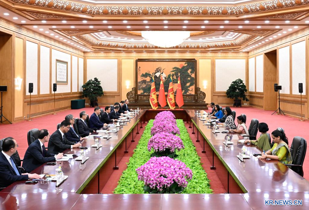 [신화망 베이징 10월14일] 시진핑(習近平) 중국 국가주석이 14일 오전 베이징 인민대회당에서 글로벌 여성 서밋 참석차 중국을 방문한 하리니 아마라 수리야 스리랑카 총리와 회견했다. [촬영/신화사 기자 리샹(李響)]