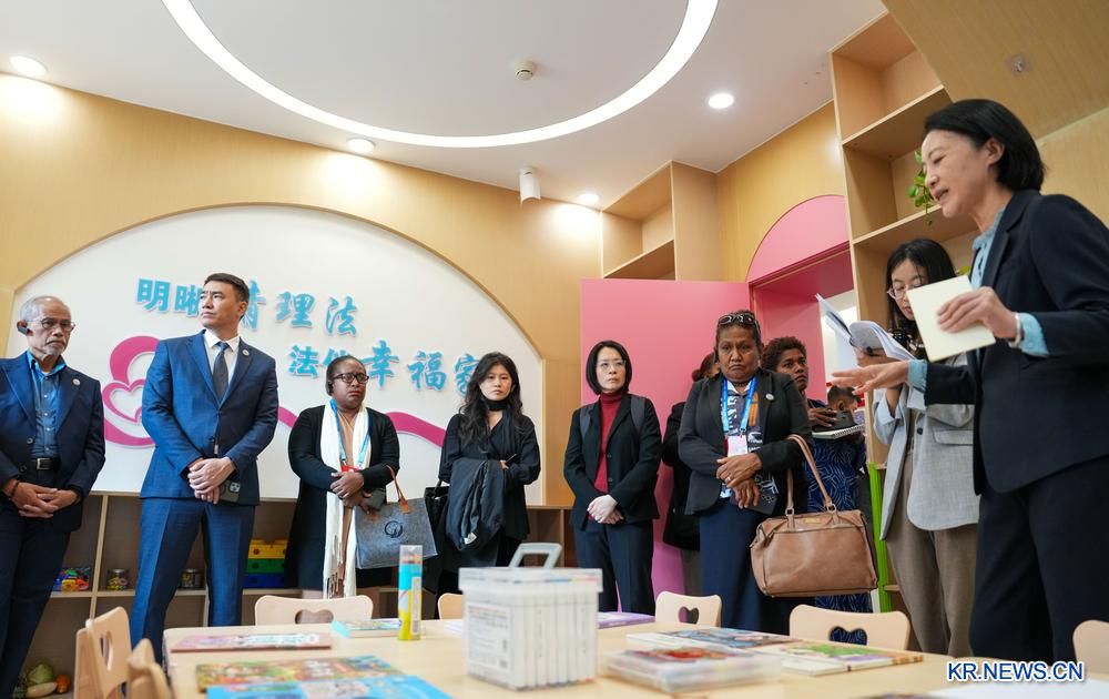 [신화망 베이징 10월15일] '글로벌 여성 서밋' 귀빈들이 14일 베이징시 순이(順義)구에 위치한 여성아동사회서비스센터를 방문했다.