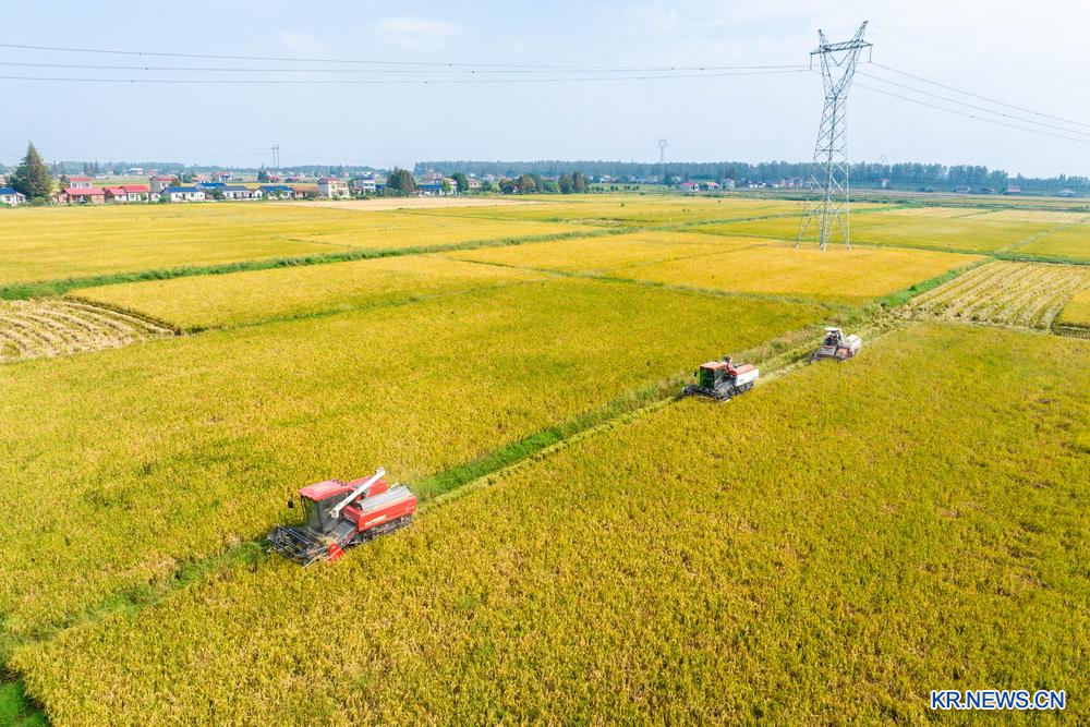 [신화망 창사 10월16일] 최근 후난(湖南)성 이양(益陽)시 난(南)현의 벼가 수확기에 들어갔다. 난현은 후난성의 주요 곡물 생산지 중 하나로 새우와 쌀을 동시에 키우는 산업을 대대적으로 육성하고 있다. 올해 난현의 새우∙쌀 재배 면적은 4억㎡ 이상으로, 666㎡당 벼 생산량이 600kg에 이를 전망이다.