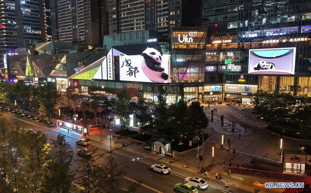 [신화망 청두 10월16일] 최근 청두(成都) 하이테크산업개발구 자오쯔(交子)거리에 설치된 육안 3D 디지털 판다에 새로운 장면이 추가됐다. 판다가 건물 외벽을 기어오르다 이따금 고개를 돌리는 모습은 행인들의 눈길을 사로잡았다. 2024년 도입 후 청두의 핫플레이스로 떠오른 3D 디지털 판다는 바로 옆 쌍둥이 타워의 조명쇼와 어우러져 독특한 도시 야경을 연출한다.