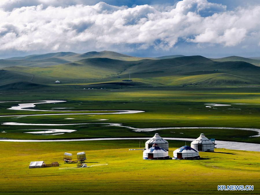 지난달 14일 네이멍구 후룬베이얼(呼倫貝爾)시 천바얼후(陳巴爾虎) 초원의 파오(천막으로 만든 이동 가옥). (사진/신화통신)