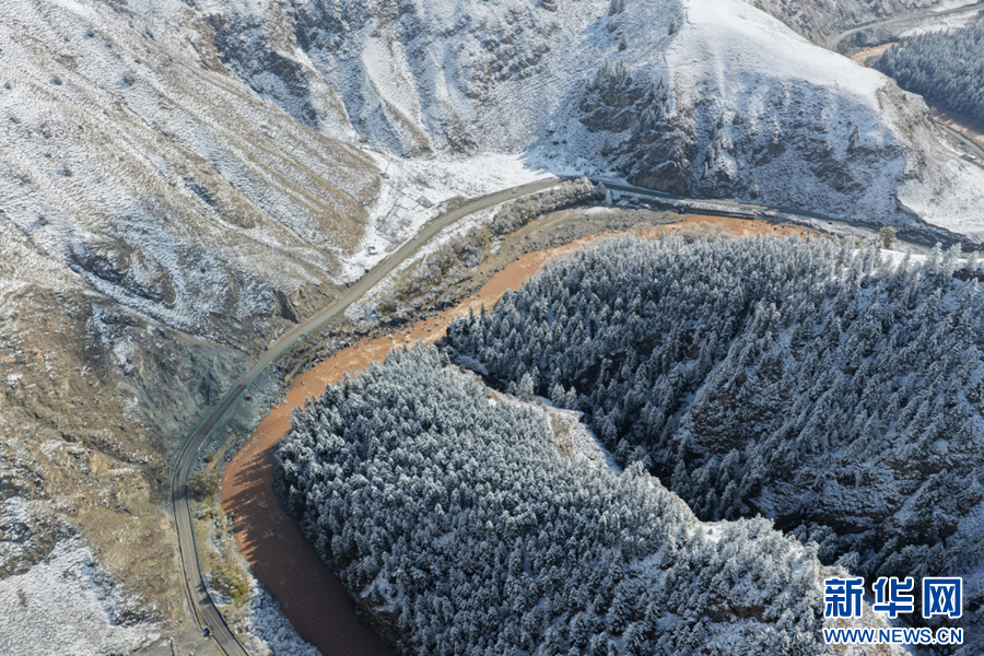 눈 온 뒤 치롄산 9호도로 연선의 헤이허(黑河)협곡 풍경.