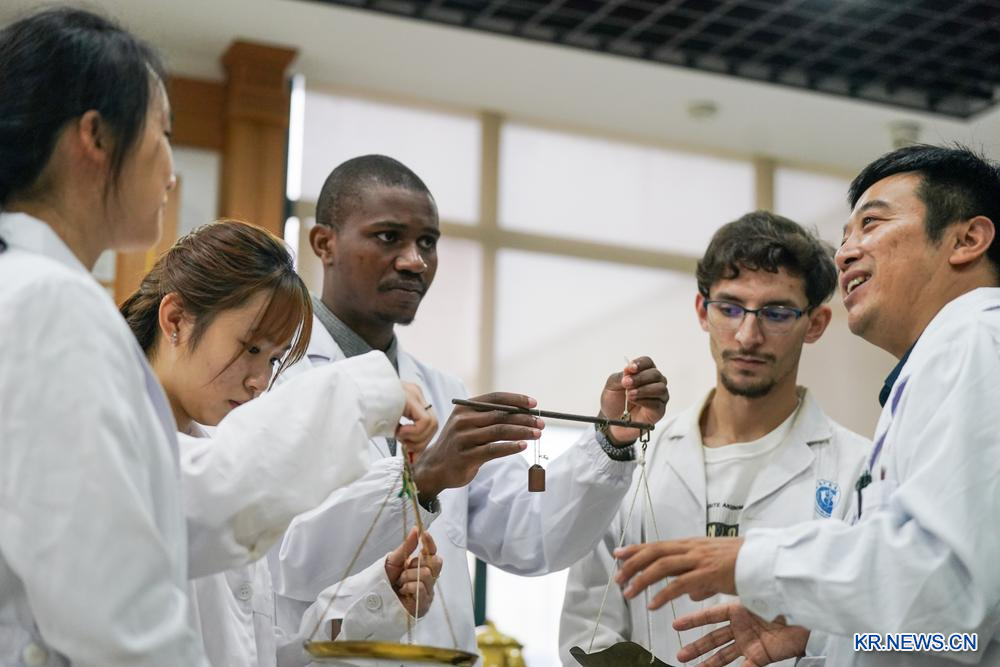 [신화망 허페이 10월21일] 안후이(安徽)중의약대학 인문국제교육교류학원에서는 세계 각지에서 온 140여 명의 학생이 중의약 이론 지식을 학습하며 배움의 길을 걷고 있다. 동시에 다양한 문화 체험을 통해 중의약 문화에 대한 이해를 넓혀가고 있다.