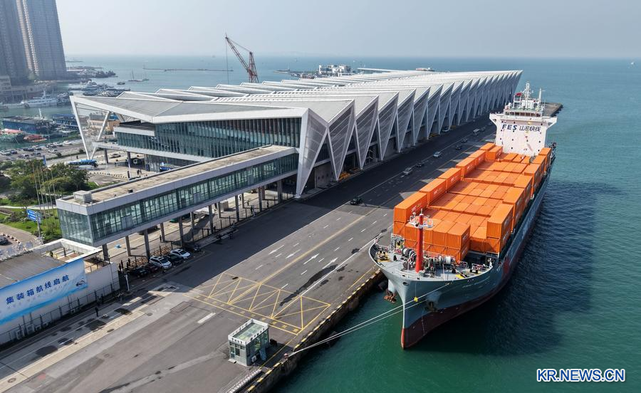 새벽 햇살이 비추는 한국 인천신항 부두. 크레인이 오르내리고 기적 소리가 울려 퍼진다. 중국 해운 기업의 로고가 찍힌 컨테이너가 자동화 하역 장비에 의해 질서정연하게 상·하역된다. 해당 컨테이너는 곧 초대형 원양선에 실려 세계 각지로 향하게 된다.
