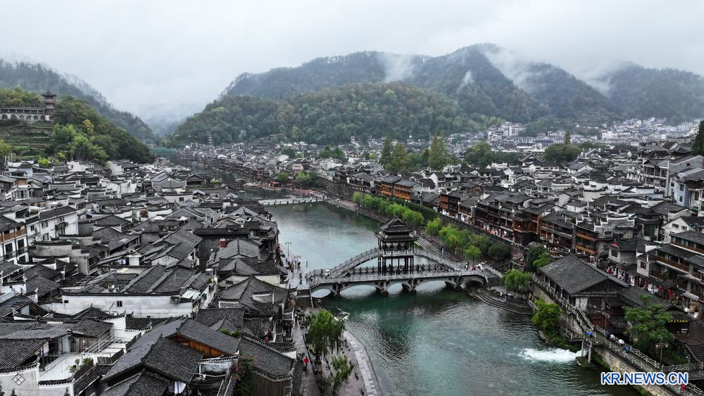 6일 드론으로 내려다본 펑황고성. 2025.11.7