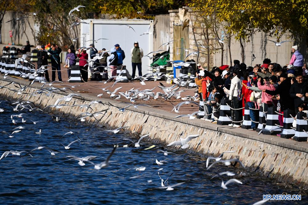 [신화망 톈진 11월14일] 초겨울을 맞아 갈매기 떼가 추운 시베리아에서 톈진(天津) 빈하이(濱海)신구를 찾았다. 이곳에 서식하는 갈매기는 약 1천 마리 이상으로 많은 관광객의 발길을 이끌고 있다.