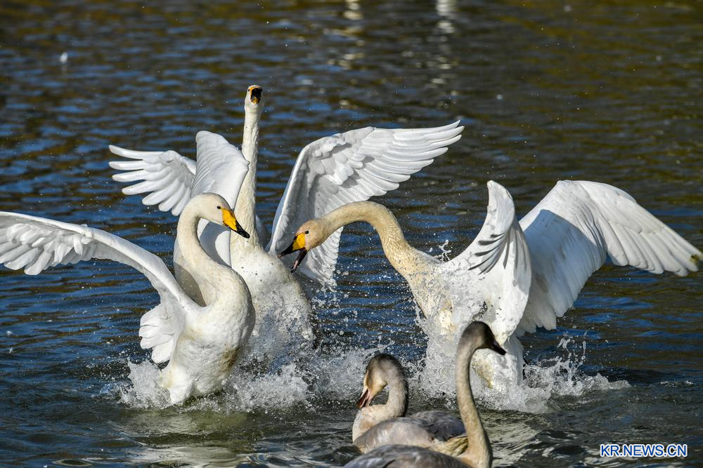 [신화망 윈청 11월14일] 초겨울로 접어들면서 산시(山西)성 핑루(平陸)현 황허(黃河)습지에 월동을 위해 시베리아에서 날아온 백조들이 모여들었다. 해마다 약 1만 마리의 백조들이 이곳에서 겨울을 난다.