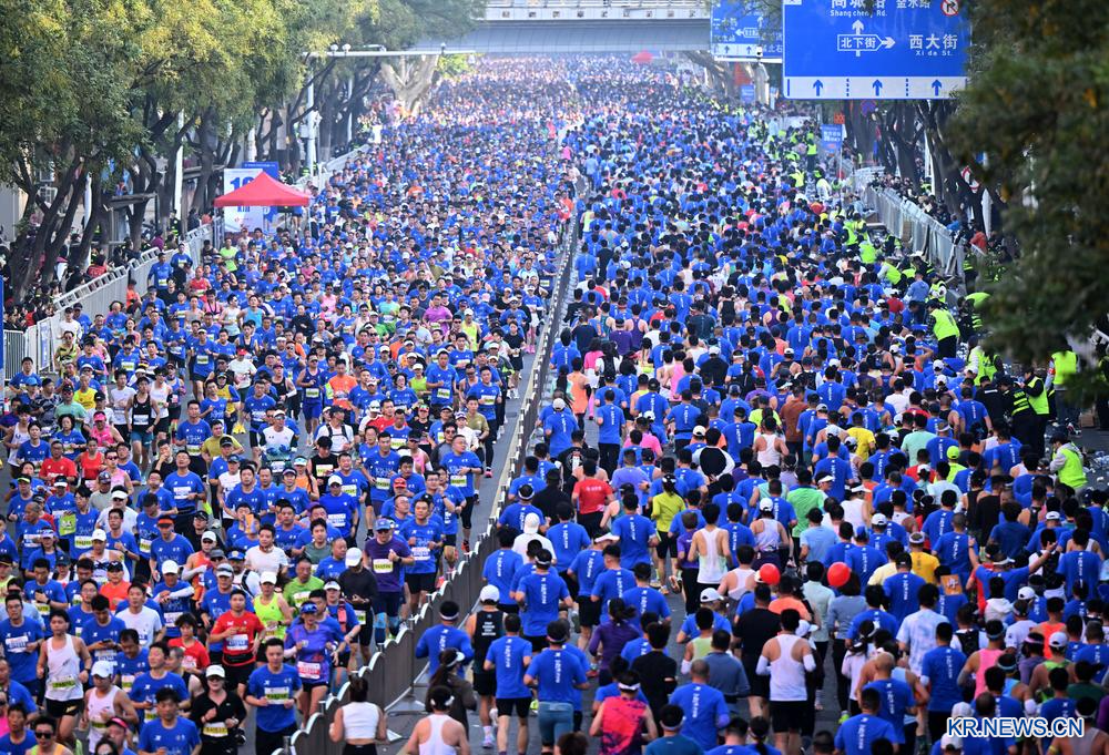 이날 정저우시 도로 위를 가득 메운 마라톤 참가 선수들. 2025.11.16