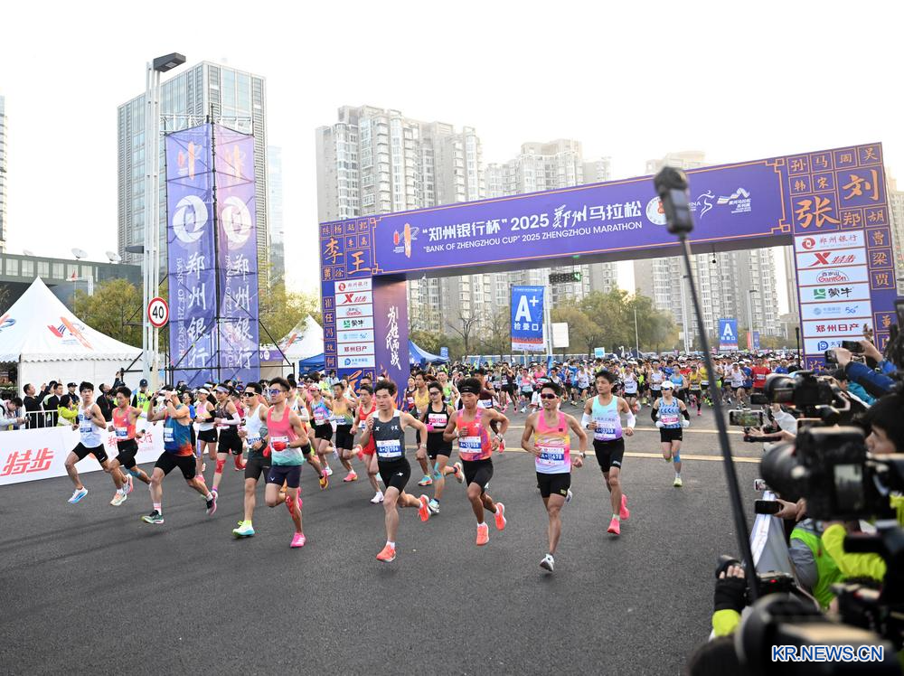 [신화망 정저우 11월17일] '2025 정저우(鄭州) 마라톤'이 16일 허난(河南)성 정저우시 루이후(如意湖) 인근에서 열렸다. 이번 대회에는 풀코스와 하프 두 종목이 마련됐으며 약 2만5천 명이 참가했다.