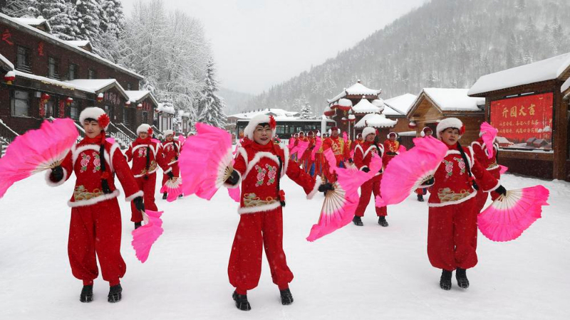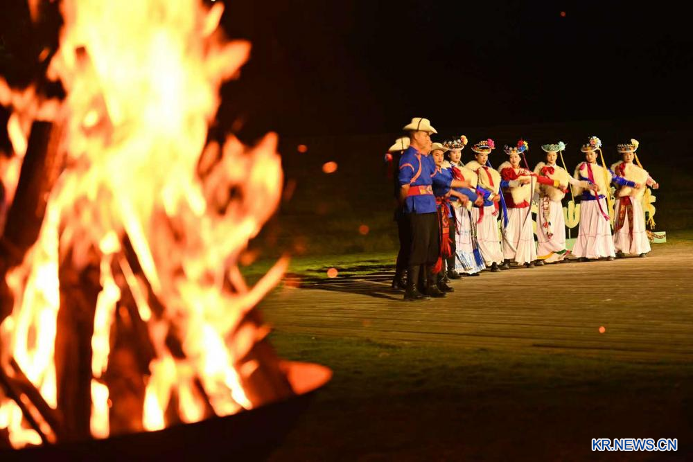 절기상 입동(立冬)인 7일 배우들이 '제7회 다량산(大涼山) 연극제' 개막식에서 춤을 선보이고 있다.