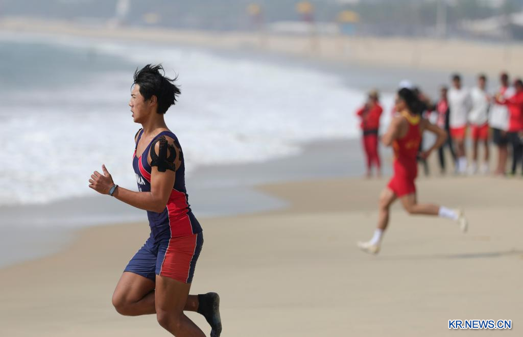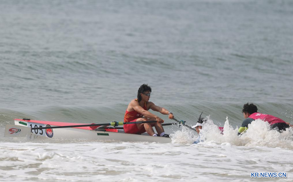 17일 광둥성 양장시에서 열린 제15회 전국운동회 비치조정 남자 싱글스컬 결승 A에서 탄루카이(푸젠팀)가 룽전타오(쓰촨팀)를 꺾고 금메달을 땄다. [촬영/신화사 기자 리란(李然)]pagebreak