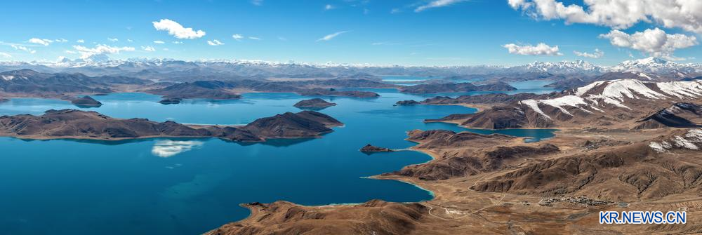 [신화망 라싸 11월21일] 최근 양줘융춰(羊卓雍錯)에 맑은 날씨가 이어지면서 아름다운 풍경이 펼쳐졌다. 시짱(西藏)어로 '옥처럼 푸른 호수'라는 뜻을 가진 양줘융춰는 대부분 시짱 산난(山南)시 랑카쯔(浪卡子)현에 위치해 있으며, 4천400m가 넘는 해발 고도를 자랑한다.