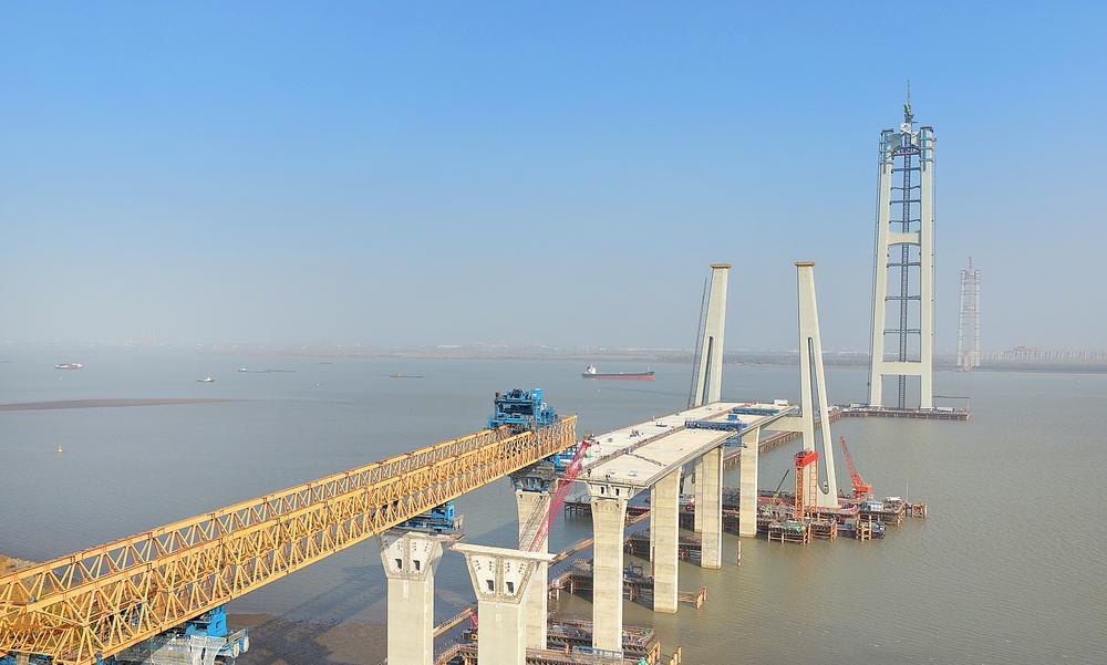 지난달 30일 펑난구 연해 습지 수면에서 먹이 활동하는 황새를 드론으로 내려다봤다. 2025.12.1