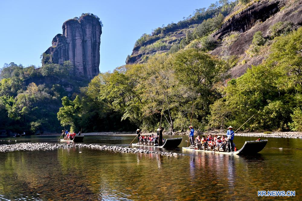 최근 푸젠(福建)성 우이(武夷)산은 청명한 하늘과 맑은 강물, 산과 계곡 곳곳의 단풍나무와 수삼나무 등이 어우러져 겨울 특유의 아름다운 풍경을 자아내며 관광객들의 발길을 사로잡고 있다.