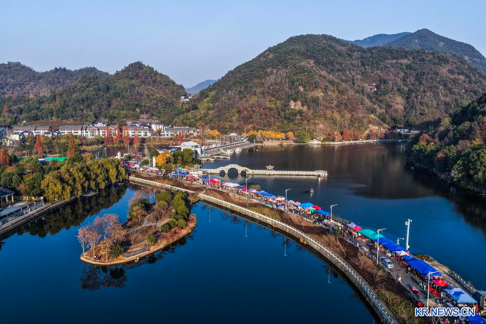 [신화망 젠더 12월7일] 저장(浙江)성 젠더(建德)시 첸탄(乾潭)진의 연례 행사인 '완러(萬樂)' 농촌 장터가 6일 시작됐다. 약 2㎞에 달하는 강변 산책로에 300여 개의 노점이 마련돼 생활용품, 농산물, 문화창의 등 제품을 판매한다. 또한 현장에서는 곤곡(昆曲) 공연과 인재 시장도 열린다.