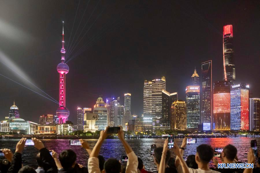 지난 4월 17일 상하이 와이탄(外灘)에서 바라본 루자쭈이(陸家嘴) 야경. (사진/신화통신)