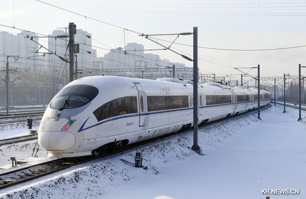 [신화망 하얼빈 1월5일] '하얼빈(哈爾濱) 빙설대세계' 테마 고속열차 G1276편이 4일 하얼빈 서역에서 정식으로 운영을 개시해 종착역인 우한(武漢)으로 향했다. 열차 안팎에 빙설대세계 관련 요소를 적용한 해당 테마 열차는 '움직이는 명함' 역할을 하며 빙설 경제 열기를 더욱 끌어올릴 예정이다.