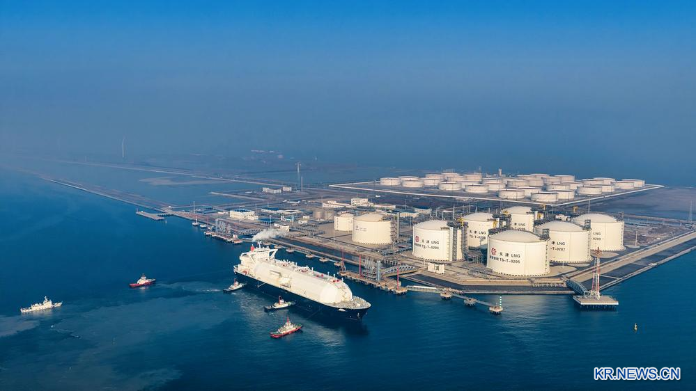 [신화망 톈진 1월6일] 6만4천400t(톤)의 LNG(액화천연가스)를 실은 해외 운반선이 5일 중국 국가석유천연가스관망공사(PipeChina) 톈진(天津) LNG 부두에 접안하면서 해당 부두가 2026년 첫 LNG 하역 작업을 개시했다.