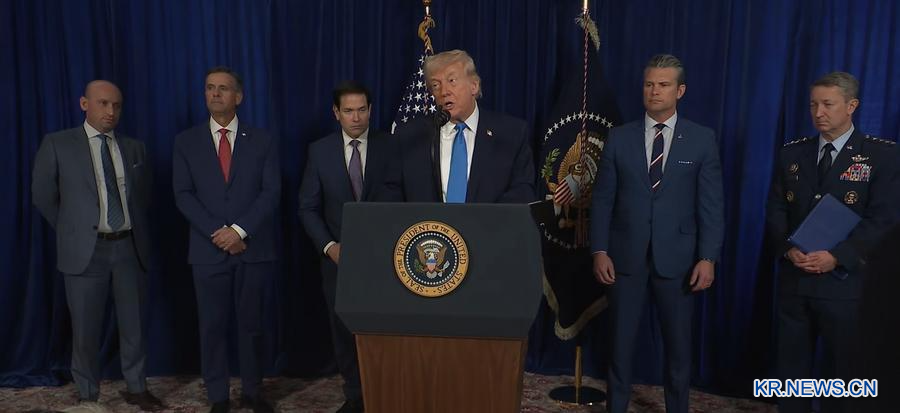 지난 3일 도널드 트럼프 미국 대통령이 플로리다주 마라라고 리조트에서 기자회견을 하고 있다.