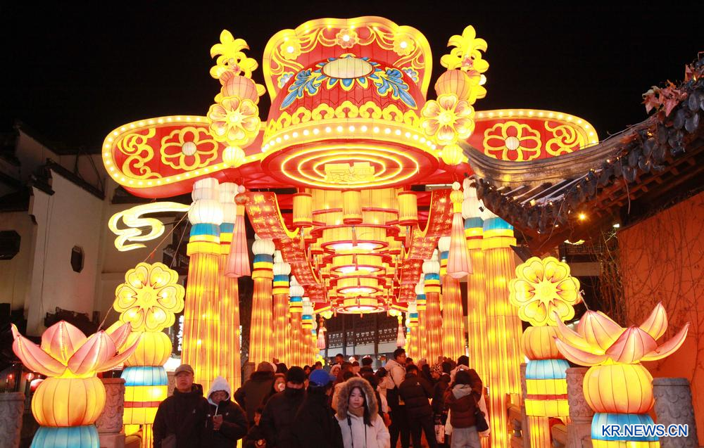 이날 난징 푸쯔먀오(夫子廟) 관광지에서 등불을 감상하고 있는 관광객들. 2026.1.21