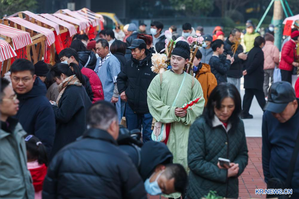 이날 인파로 북적이는 무형문화유산 춘절맞이 용품 시장. 2026.1.24