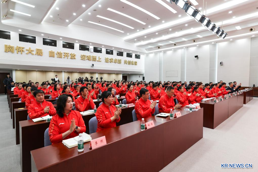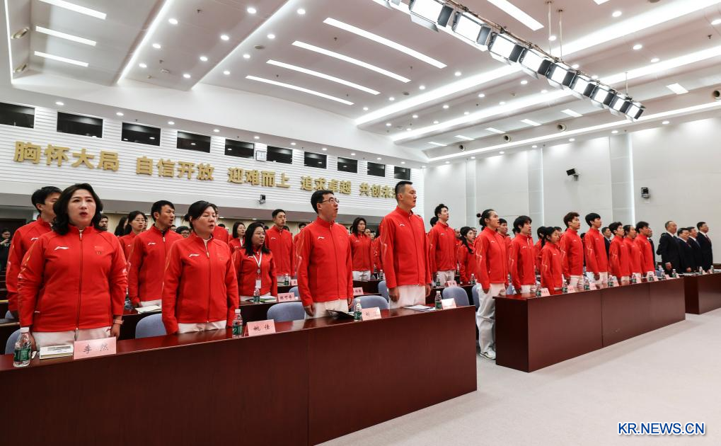 [신화망 베이징 1월28일] 밀라노∙코르티나담페초 동계올림픽 중국 선수단 결단식이 27일 베이징에서 열렸다.[촬영/신화통신 기자 나위치(那宇奇)]