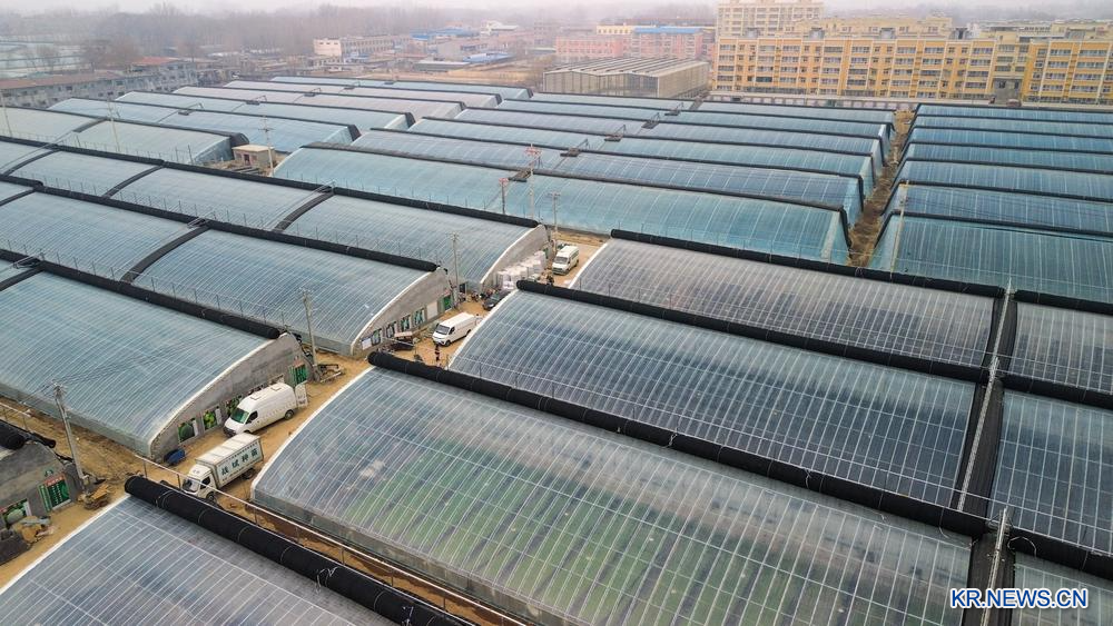 28일 선현 옌뎬(燕店)진의 채소 재배 비닐하우스를 드론으로 내려다봤다. 2026.1.28