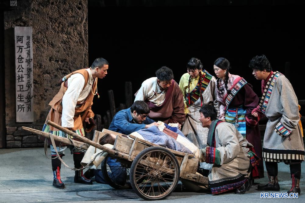 [신화망 란저우 1월29일] 28일 밤 2026년도 중국 국가예술기금 모금 프로젝트인 대형 창작 연극 '청춘의 아완창(阿萬倉)'이 간쑤(甘肅)성 란저우(蘭州)시에 위치한 황허(黃河)극원에서 초연됐다. 해당 작품은 56년간 간쑤성 초원에서 많은 사람을 살린 '초원 의사'의 실화를 바탕으로 그의 헌신과 인간애를 그려낸 것으로 전해진다.