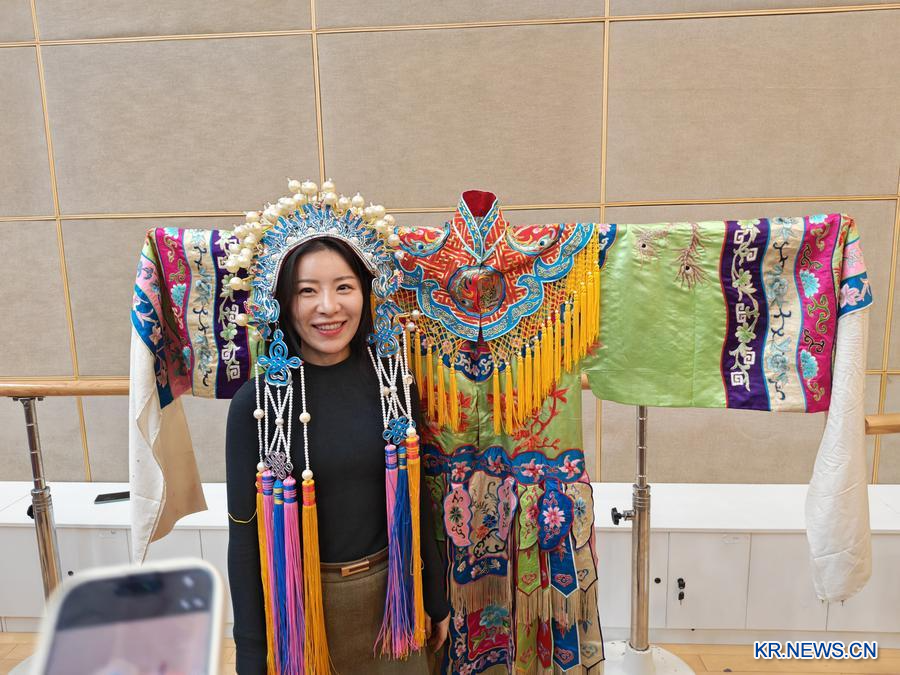 지난 29일 허페이 루극(廬劇∙안후이성 지역의 전통 희곡)원에서 전통 루극 소품을 직접 착용해본 박소희 씨. (취재원 제공)