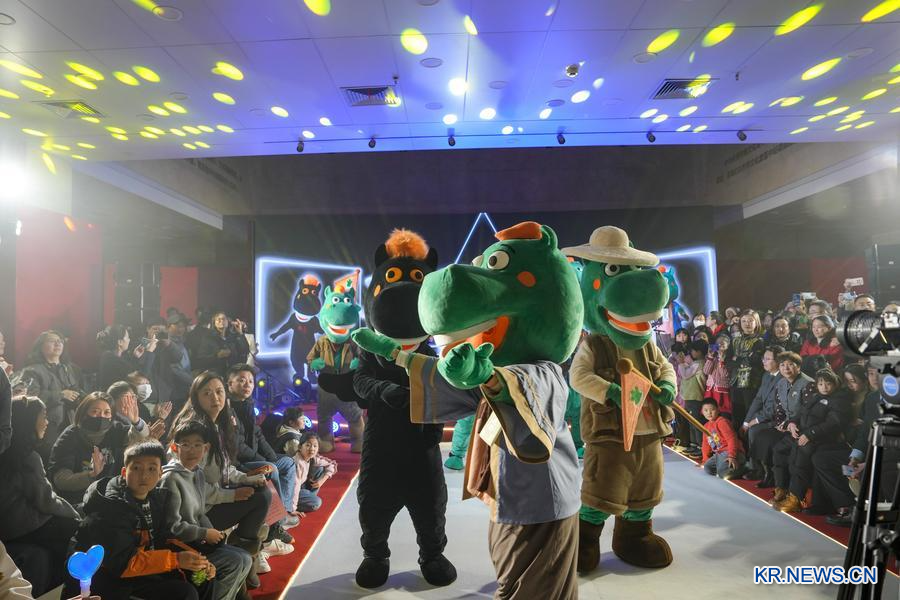 26일 밤 간쑤성 박물관 1층 로비에서 열린 행사 현장에서 관람객 앞에 등장한 동분마 지식재산권(IP) 인형. (사진/신화통신)