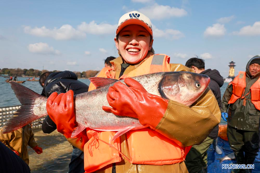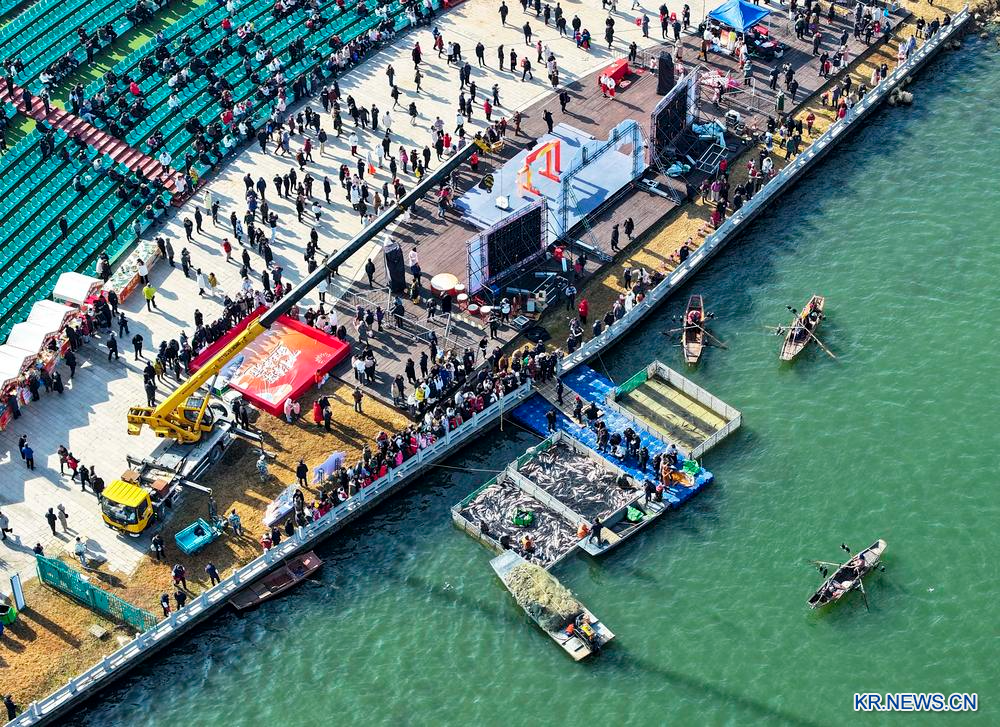 [신화망 타이저우 2월1일] '2026 친후완(溱湖灣) 겨울 낚시' 행사가 1월 31일 장쑤(江蘇)성 타이저우(泰州)시 친후완에서 열렸다. 행사에 참여한 사람들이 겨울 낚시 체험을 하며 즐거운 한때를 보냈다.