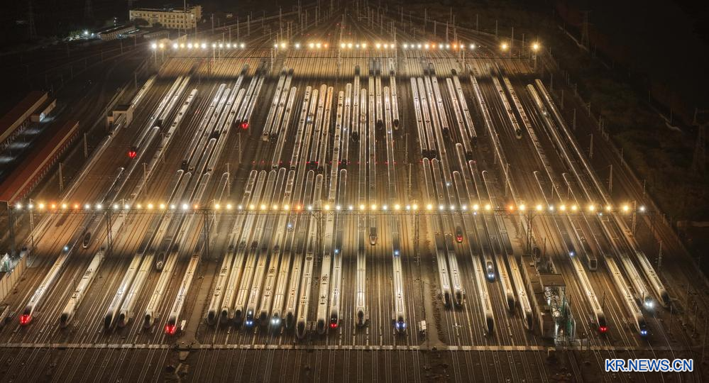 [신화망 광저우 2월2일] 2026년 춘윈(春運·춘절 특별 수송)이 2일부터 공식적으로 시작된다. 중국철로 광저우(廣州)국그룹 광저우 고속열차 구간에는 출발 대기 중인 열차들이 가지런히 정차해 있다.