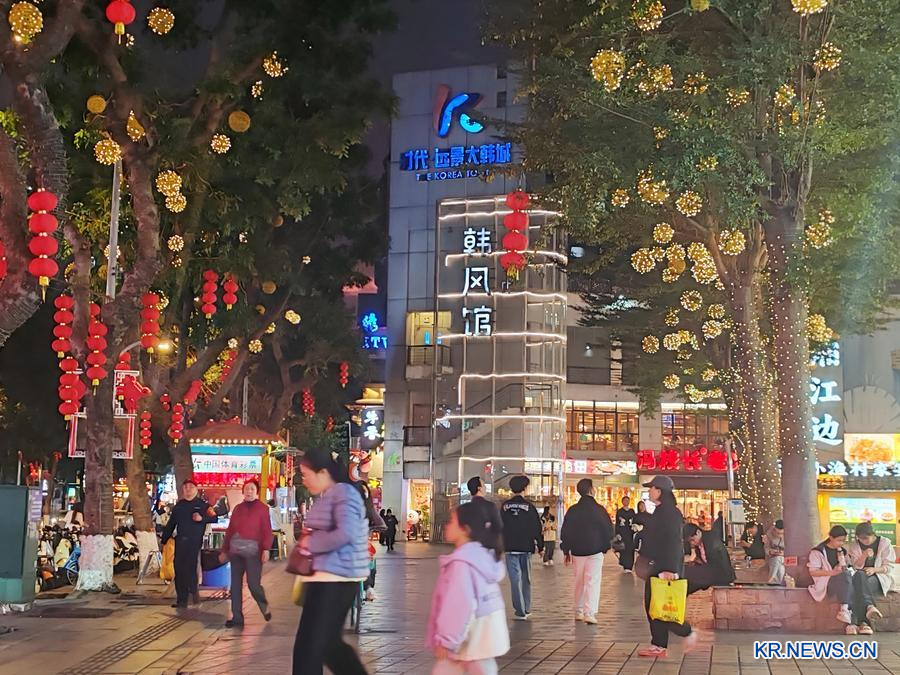 [신화망 중국 광저우 2월22일] 이번 춘절(春節·음력설) 연휴 기간 광둥(廣東)성 광저우(廣州)시 바이윈(白雲)구 위안징루(遠景路)의 '한국 거리'에선 광둥 전통 꽃등이 높이 걸리고 한식 고깃집에서 흘러나오는 고소한 냄새가 거리를 가득 채우며 중한 양국의 문화가 한데 녹아든 풍경을 자아냈다.