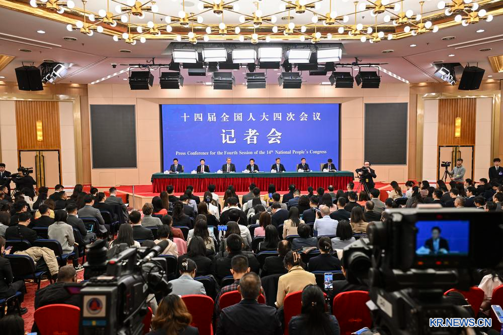 제14기 전국인민대표대회(전인대) 제4차 회의 기자회견이 6일 베이징 메이디야(梅地亞)센터 프레스룸에서 열렸다. 정산제(鄭柵潔) 중국 국가발전개혁위원회(발개위) 주임, 란포안(藍佛安) 재정부 부장(장관), 왕원타오(王文濤) 상무부 부장, 판궁성(潘功勝) 중국인민은행(중앙은행) 행장, 우칭(吳清) 중국증권감독관리위원회 주석 등은 내외신 기자들의 ▷발전∙개혁 ▷재정∙예산 ▷상무 ▷금융∙증권 등 관련 질문에 답변했다.