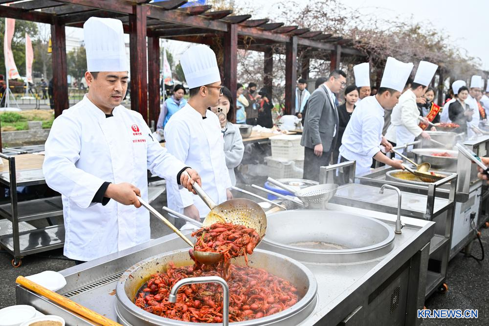 [신화망 중국 쉬이 4월3일] '2026년 쉬이(盱眙) 샤오룽샤(小龍蝦·민물가재) 페스티벌' 개막식이 3일 장쑤(江蘇)성 쉬이현 화이허(淮河)진에서 열렸다. 쉬이현의 연간 샤오룽샤 생산량은 15만t(톤)에 이른다.
