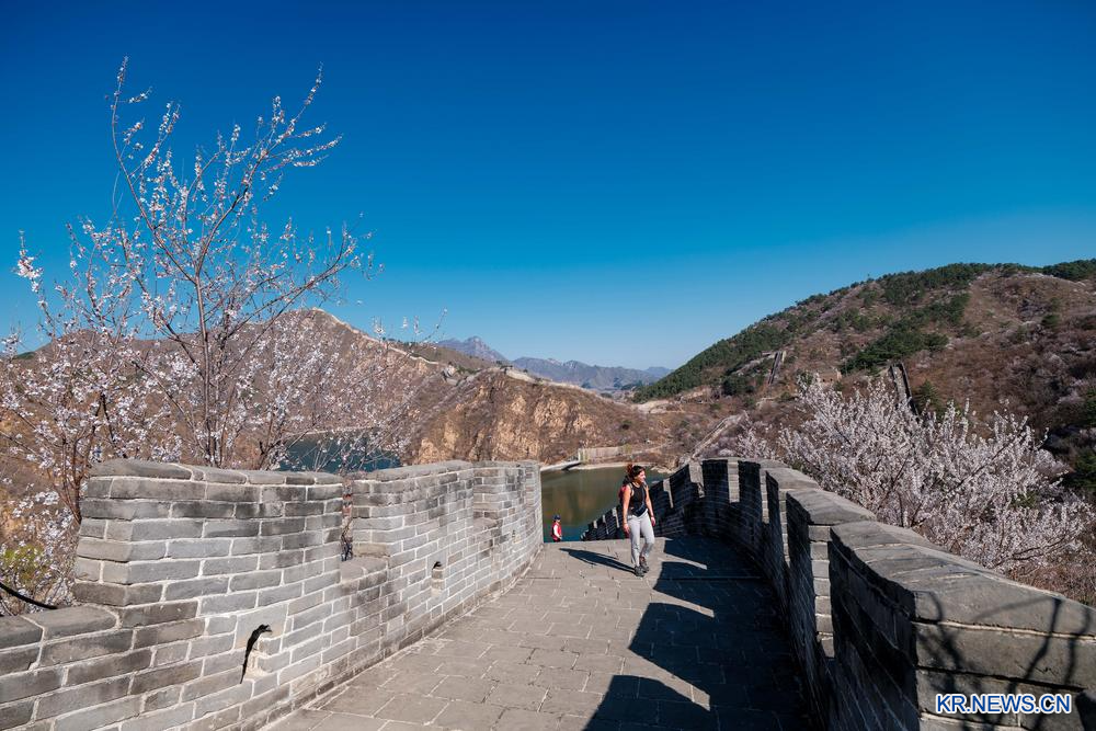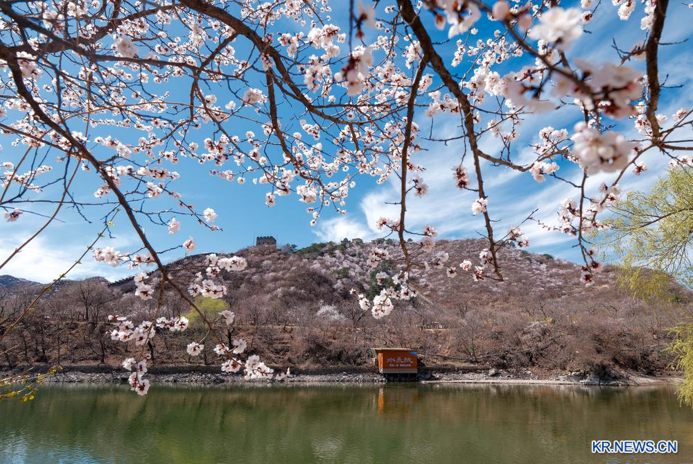 [신화망 베이징 4월3일] 베이징시 화이러우(懷柔)구 황화청수이(黃花城水) 만리장성 인근에선 산꽃들이 앞다투어 꽃망울을 터트리며 아름다운 봄빛 풍경을 연출했다.