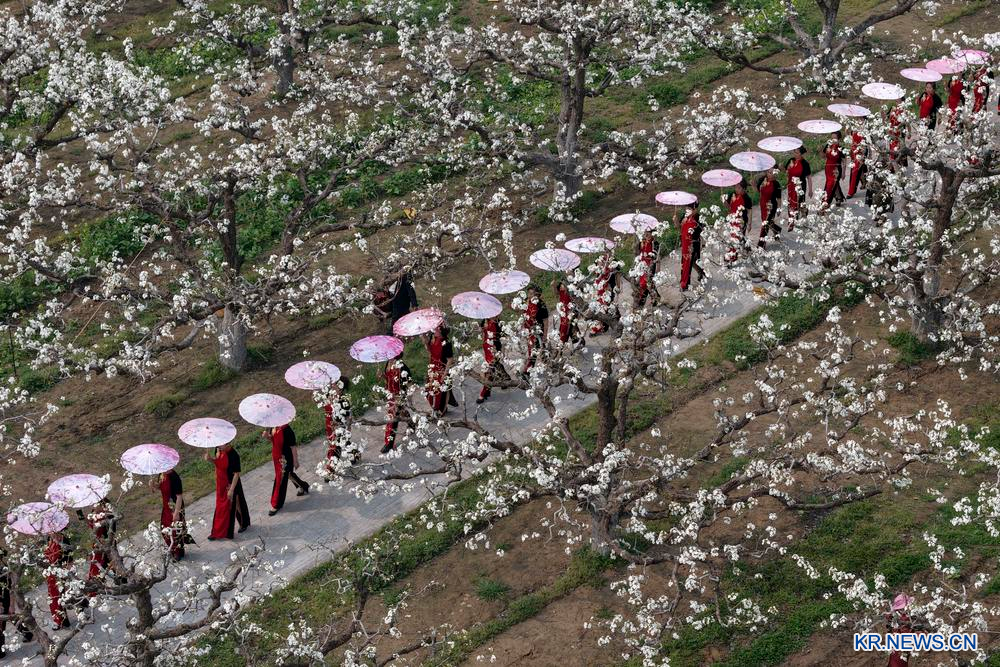 안후이(安徽)성 쑤저우(宿州)시 당산(碭山)현에선 배꽃 절정기를 맞이했다. 당산현은 최근 수년간 꽃을 매개로 농업·문화·관광의 융합 발전을 지속적으로 추진해 농촌 진흥을 촉진하고 있다.