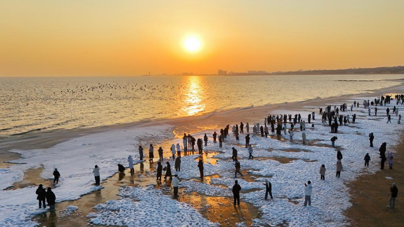 中 친황다오, 결빙 구경하는 인파로 북적