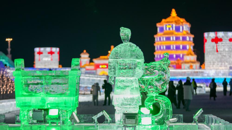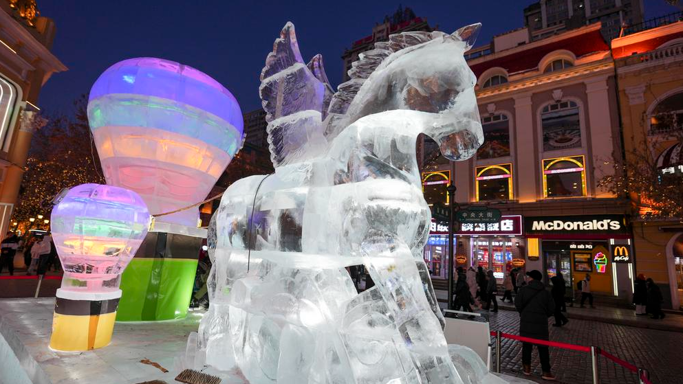 中 하얼빈, 겨울밤 밝히는 얼음 조각 작품