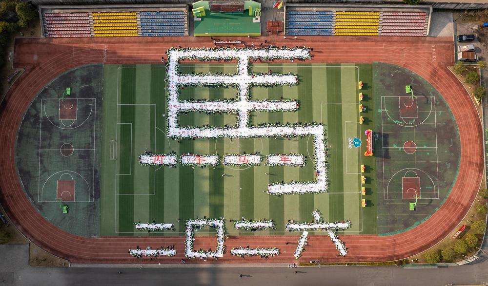 中 쓰촨, 초등학교 운동장에 등장한 거대한 '마(馬)'자 캔버스