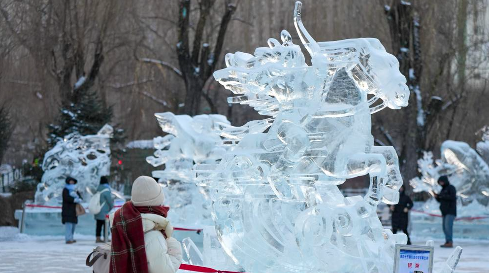 中 하얼빈 중앙거리, 얼음 조형물 앞 관광객 '북적'