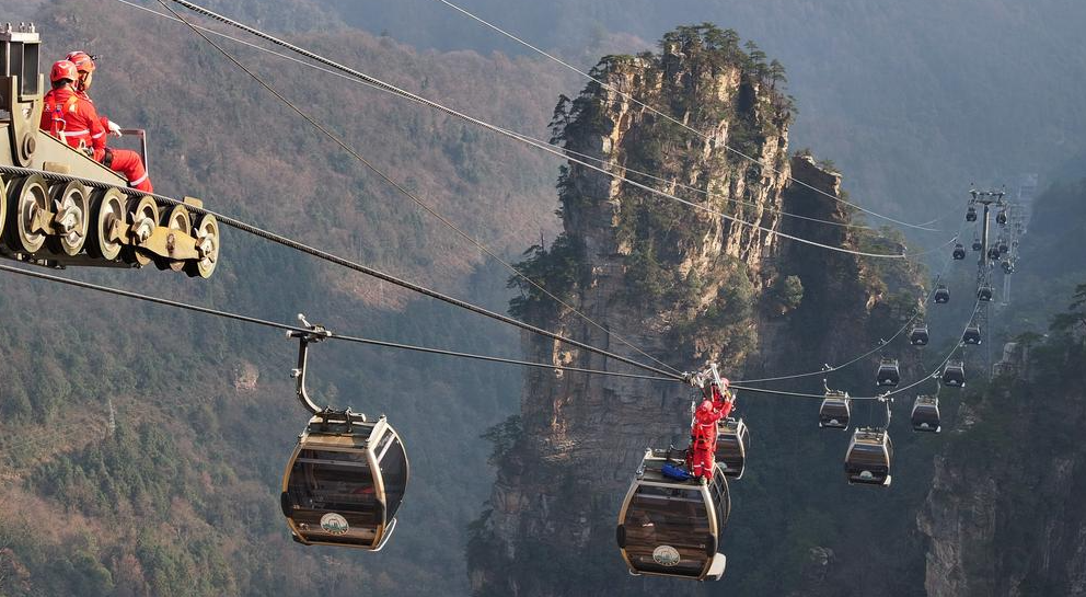 中 후난 장자제, 케이블카 동계 고공 구조 훈련 실시