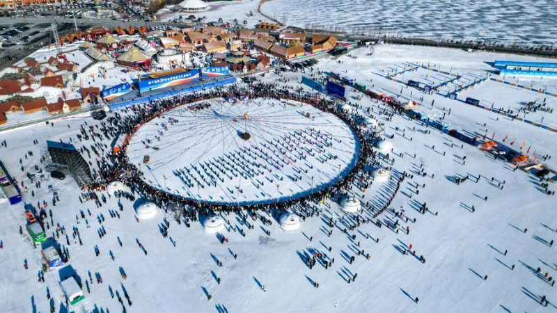 얼음 호수에서 솟구치는 물고기...中 차간후, 전통 고기잡이 축제로 관광객 북적