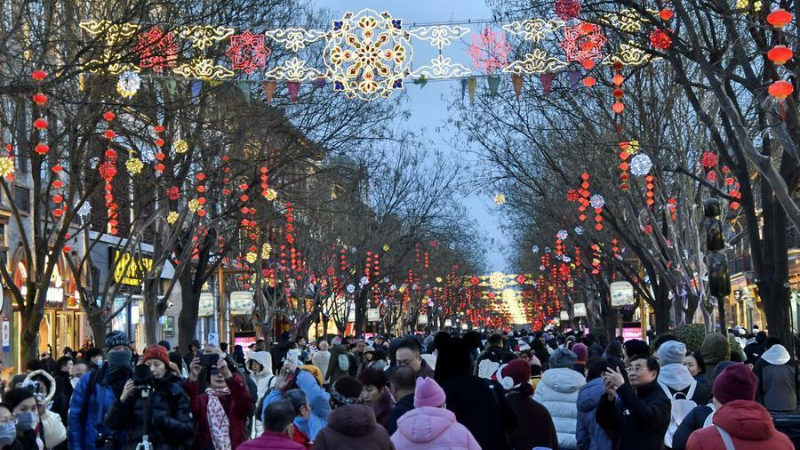 中 베이징 첸먼, 거리로 나와 춘절 즐기는 시민들