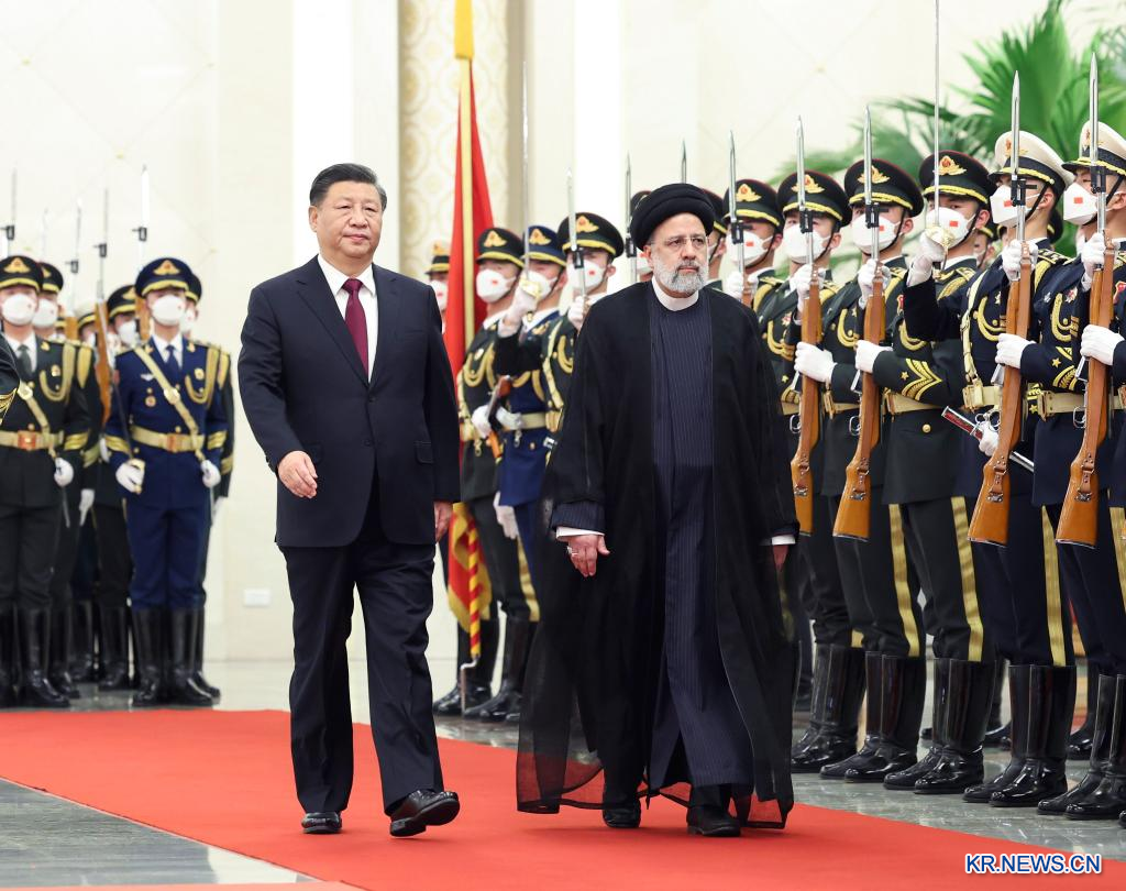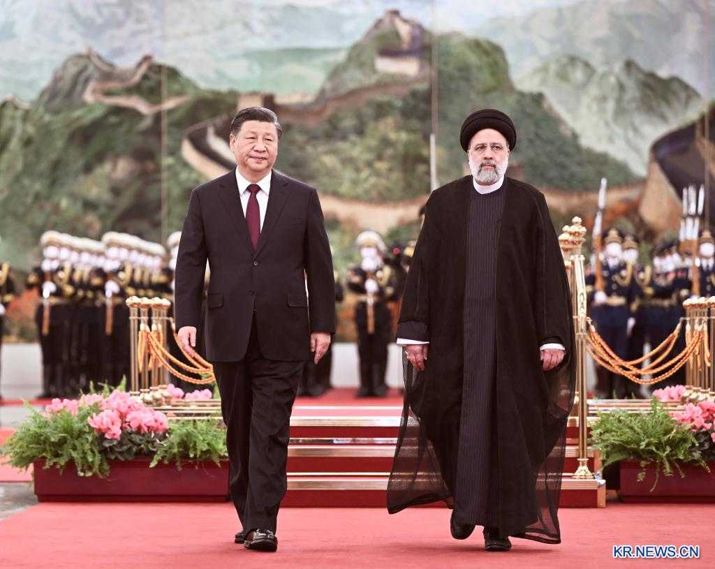 시진핑 국가주석이 14일 베이징 인민대회당에서 중국을 국빈 방문한 세예드 에브라힘 라이시 이란 대통령과 회담을 가졌다. 회담에 앞서 시 주석은 라이시 대통령을 위해 환영식을 열었다.[촬영/신화사 기자 팡싱레이(龐興雷)]